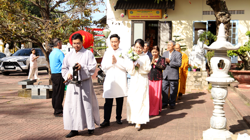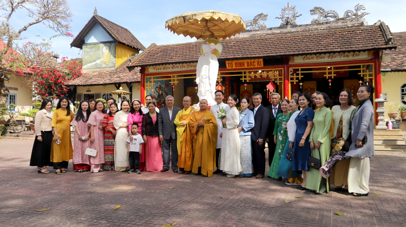 Chứng minh và tham dự buổi lễ có Đại đức Thích Đồng Tri – Trụ trì Chùa Bác Ái; Đại đức Thích Tâm Tri – Tăng thường trú, đại diện gia đình hai bên họ hàng và đông đảo Phật tử, bạn bè của đôi tân lang, tân nương tham dự.