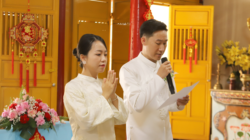 Đôi Tân lang và Tân nương đã dâng lời phát nguyện giữ gìn năm giới,